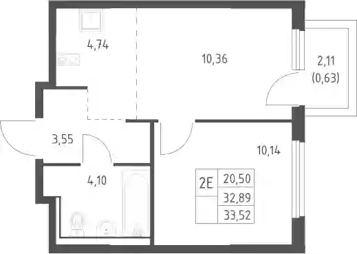 7 115 263 ₽2-к.квартира, 32.9 м², 10 эт.