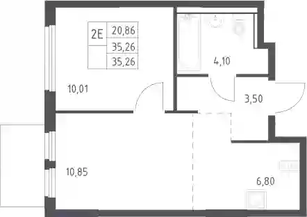 6 385 903 ₽2-к.квартира, 35.26 м², 3 эт.