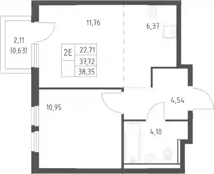 7 954 117 ₽2-к.квартира, 35.26 м², 7 эт.