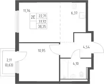 2-к.квартира, 37.72 м², 9 эт. в ЖК Пригород Лесное Корпус 21