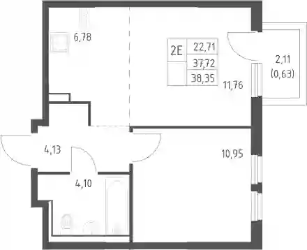 2-к.квартира, 37.72 м², 9 эт. в ЖК Пригород Лесное Корпус 21