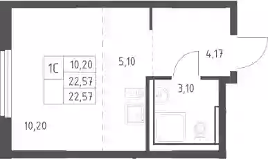 5 800 411 ₽Студия, 22.81 м², 3 эт.