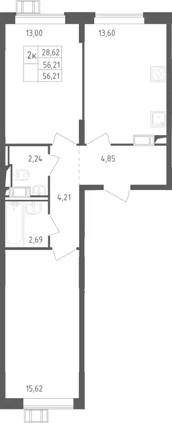 12 981 132 ₽2-к.квартира, 56.21 м², 17 эт.