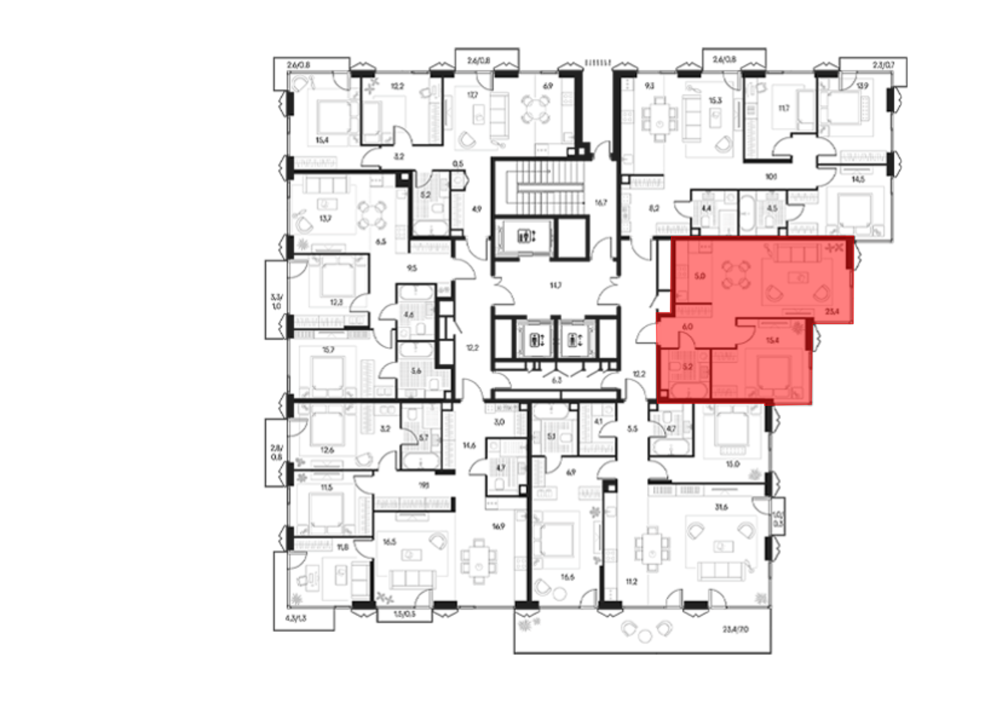 В ЖК «Primavera» представлены видовые двухуровневые пентхаусы, а также квартиры с патио и террасами. Всего в квартале доступно более 120 планировочных решений площадью от 40 до 192 квадратных метров. Большое количество квартир имеют вид на реку.