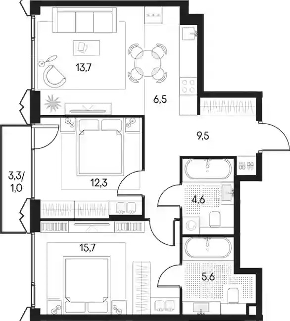 41 537 000 ₽3-к.квартира, 73 м², 25 эт.