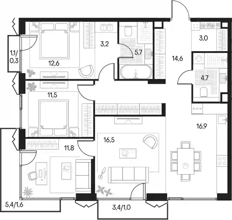 60 843 700 ₽4-к.квартира, 100.1 м², 11 эт.