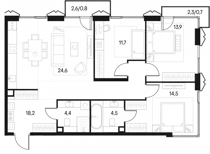 4-к.квартира, 91.8 м², 8 эт. в ЖК Primavera Корпус Беллини-1