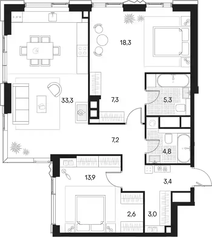 3-к.квартира, 99.1 м², 21 эт. в ЖК Primavera Корпус Беллини-2