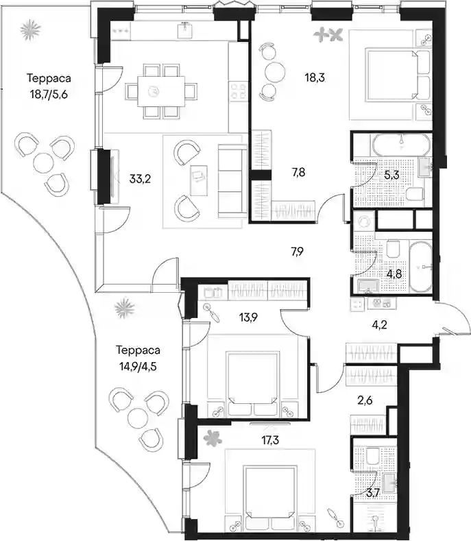 4-к.квартира, 119.1 м², 10 эт. в ЖК Primavera Корпус Беллини-2