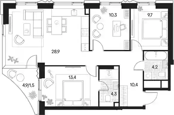 4-к.квартира, 81.1 м², 4 эт. в ЖК Primavera Корпус Беллини-2