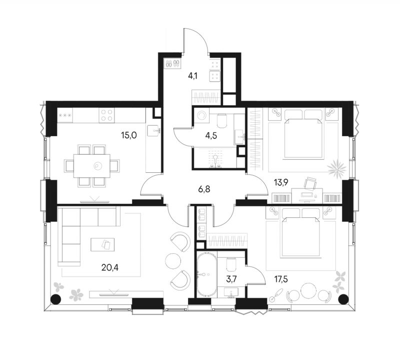 В ЖК «Primavera» представлены видовые двухуровневые пентхаусы, а также квартиры с патио и террасами. Всего в квартале доступно более 120 планировочных решений площадью от 40 до 192 квадратных метров. Большое количество квартир имеют вид на реку.
