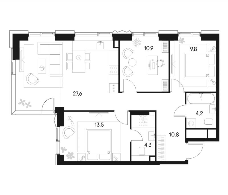 4-к.квартира, 81.1 м², 9 эт. в ЖК Primavera Корпус Беллини-3