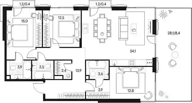 4-к.квартира, 105.6 м², 11 эт. в ЖК Primavera Корпус Беллини-4
