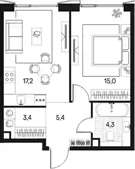 2-к.квартира, 45.3 м², 4 эт. в ЖК Primavera Корпус Беллини-5