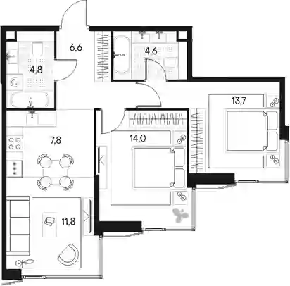 3-к.квартира, 63.3 м², 14 эт. в ЖК Primavera Корпус Беллини-6