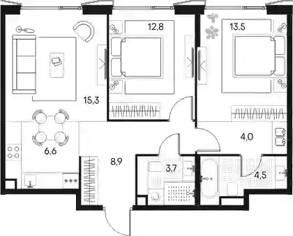 3-к.квартира, 69.3 м², 19 эт. в ЖК Primavera Корпус Беллини-6