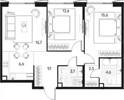 3-к.квартира, 70.2 м², 2 эт. в ЖК Primavera Корпус Беллини-6