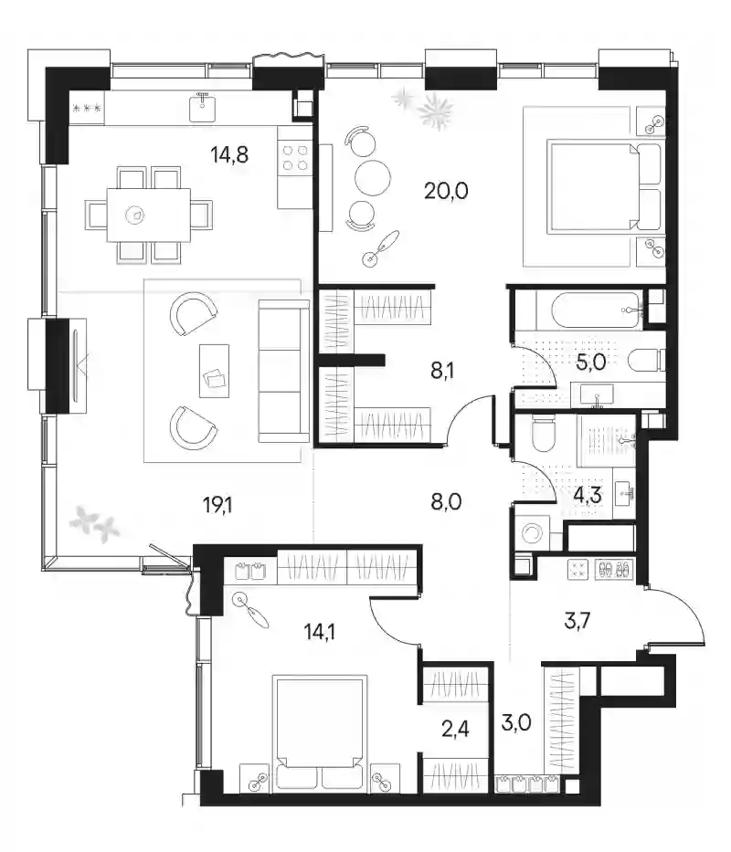 60 843 700 ₽4-к.квартира, 100.1 м², 11 эт.