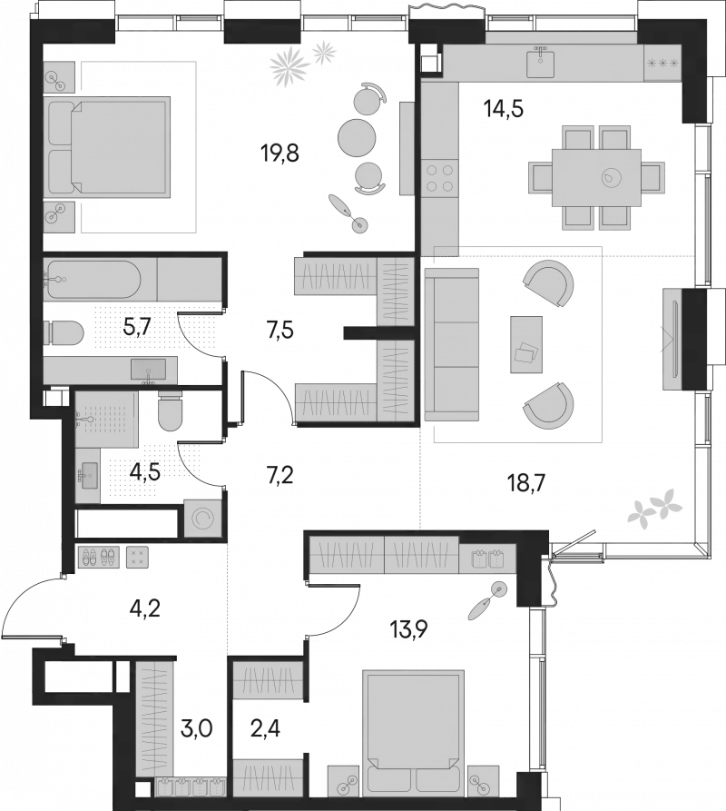 3-к.квартира, 101.4 м², 19 эт. в ЖК Primavera Корпус Вивальди-3