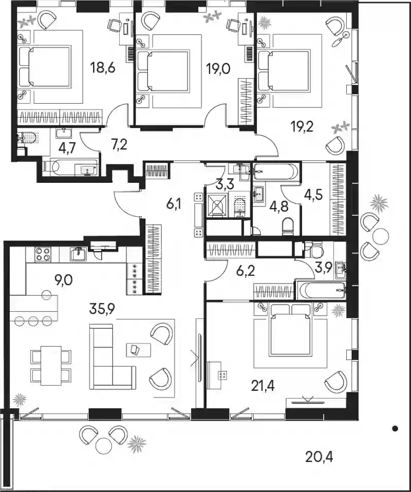5+к.квартира, 163.8 м², 19 эт. в ЖК Primavera Корпус Вивальди-4