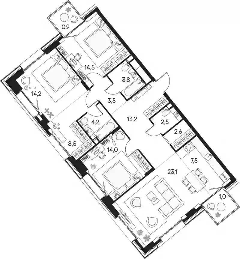 4-к.квартира, 111.6 м², 4 эт. в ЖК Primavera Корпус Вивальди-5