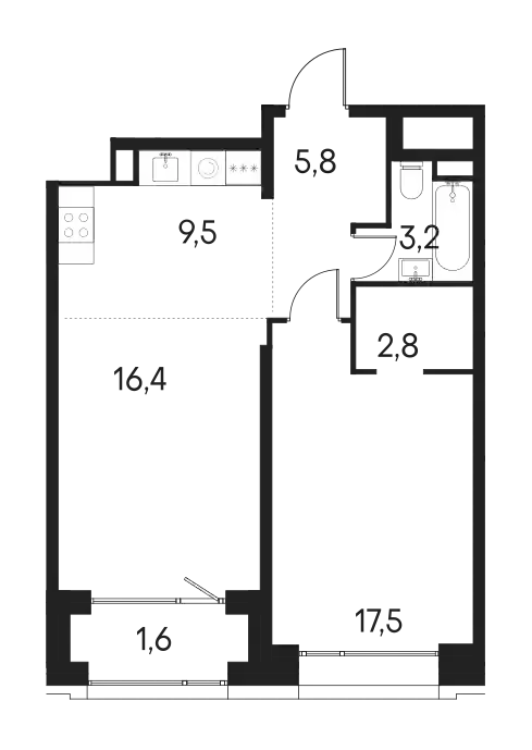 35 356 400 ₽2-к.квартира, 54.8 м², 5 эт.