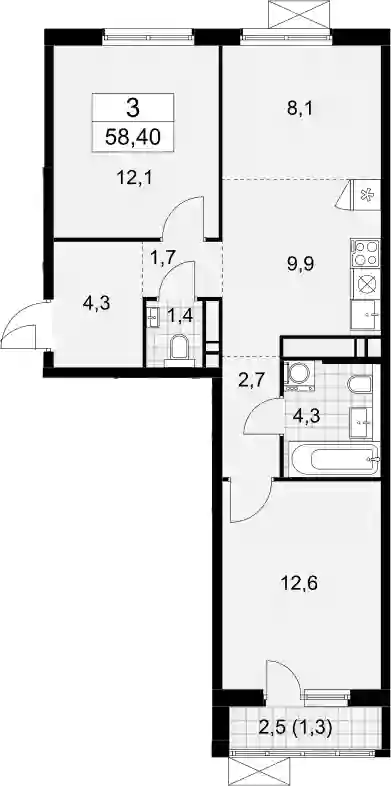3-к.квартира, 57.1 м², 16 эт. в ЖК ЖК Прокшино Корпус 11.2.3