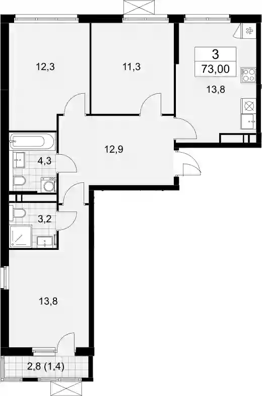 3-к.квартира, 71.6 м², 12 эт. в ЖК ЖК Прокшино Корпус 11.2.3