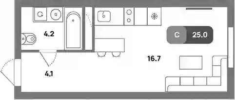 11 173 422 ₽Студия, 25 м², 17 эт.