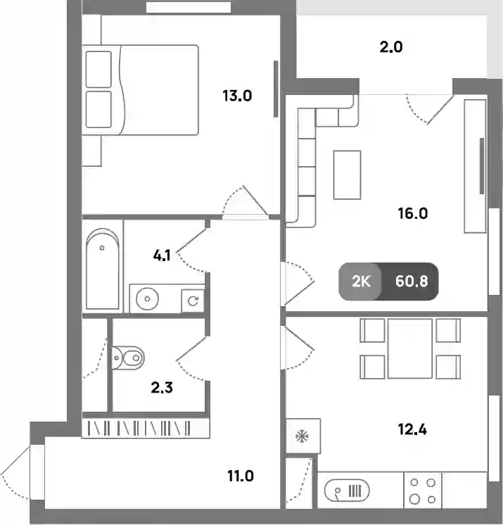 2-к.квартира, 58.8 м², 21 эт. в ЖК Проспект 39 Корпус 2