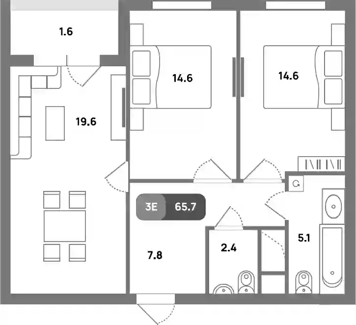 24 338 406 ₽2-к.квартира, 65.7 м², 17 эт.