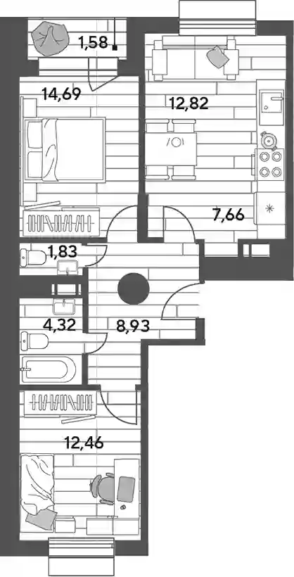 12 765 459 ₽3-к.квартира, 58.82 м², 9 эт.
