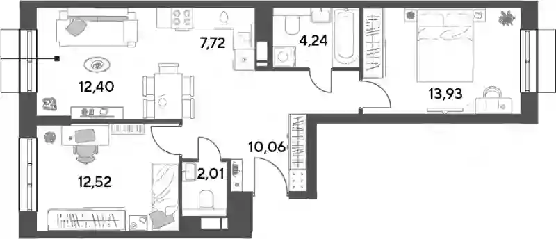 12 308 043 ₽3-к.квартира, 59.1 м², 2 эт.