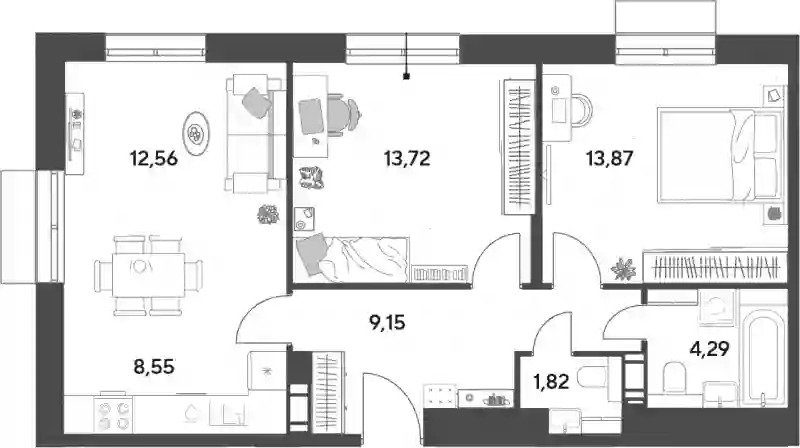 В жилом комплексе предложен широкий выбор планировочных решений от студий до трехкомнатных квартир европейского формата с просторной кухней-гостиной. Есть квартиры с двумя санузлами и квартиры с балконами. На верхних этажах расположены квартиры с потолками 3 метра. В наличии квартиры как без отделки, так и с готовой чистовой отделкой.