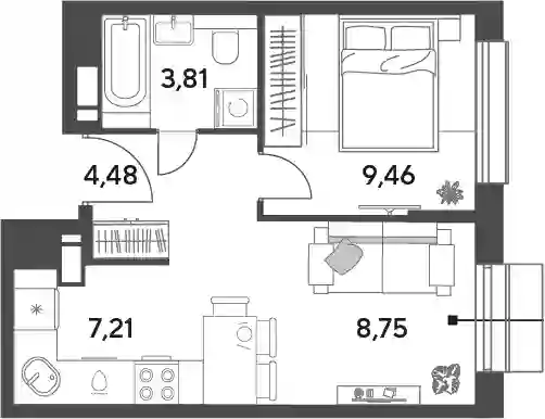 6 889 104 ₽2-к.квартира, 38.79 м², 7 эт.
