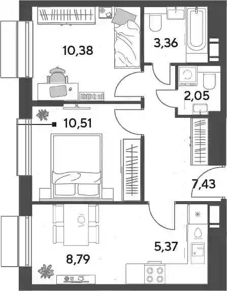 8 702 400 ₽2-к.квартира, 44.4 м², 3 эт.