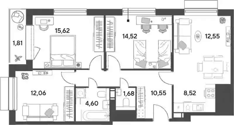 В жилом комплексе предложен широкий выбор планировочных решений от студий до трехкомнатных квартир европейского формата с просторной кухней-гостиной. Есть квартиры с двумя санузлами и квартиры с балконами. На верхних этажах расположены квартиры с потолками 3 метра. В наличии квартиры как без отделки, так и с готовой чистовой отделкой.