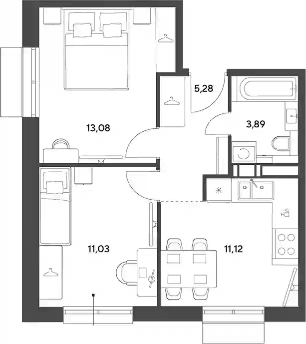 7 798 772 ₽2-к.квартира, 42.11 м², 2 эт.