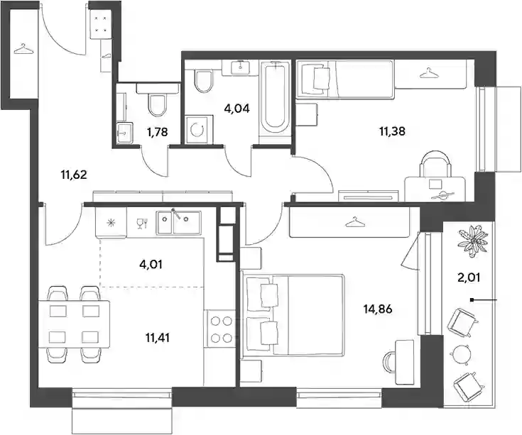 11 154 912 ₽3-к.квартира, 62.88 м², 4 эт.