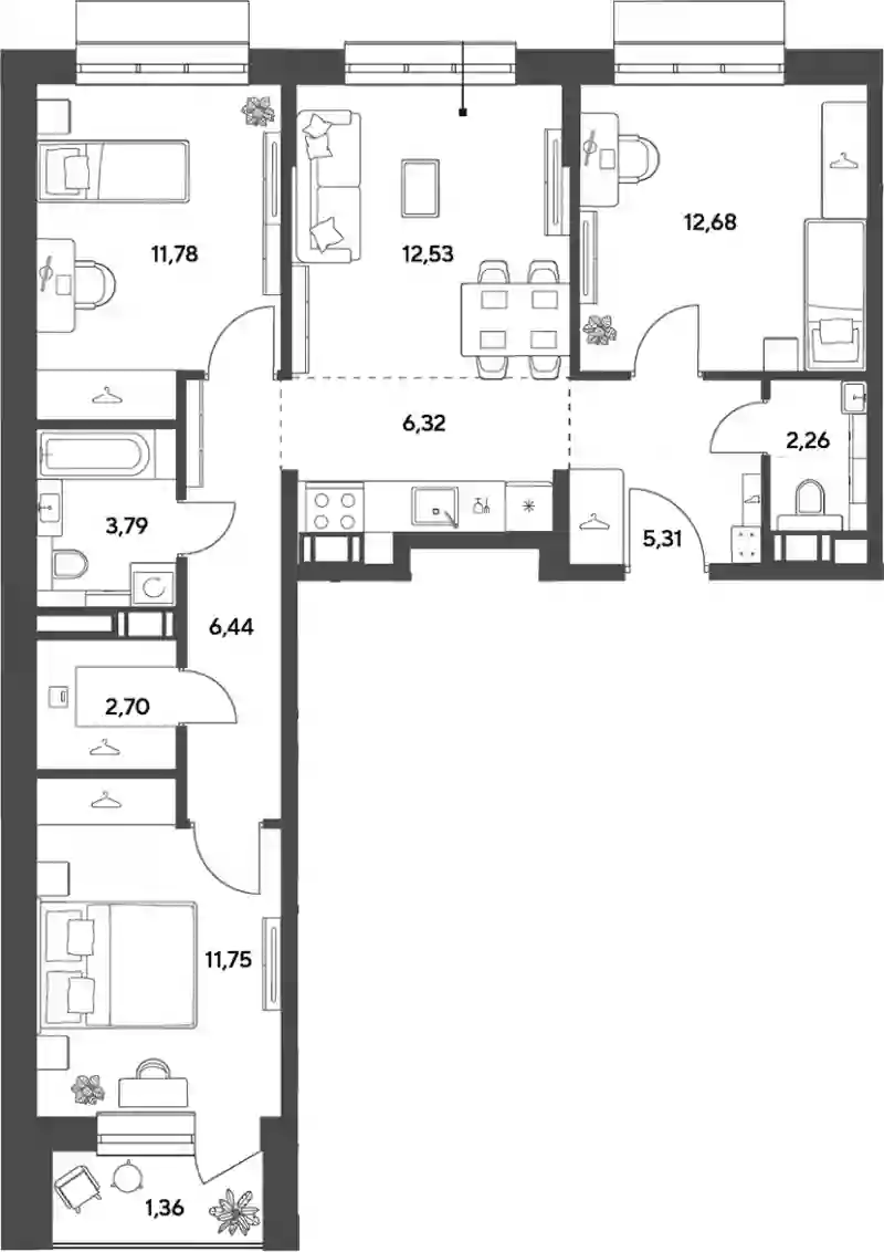 11 242 944 ₽3-к.квартира, 62.88 м², 6 эт.