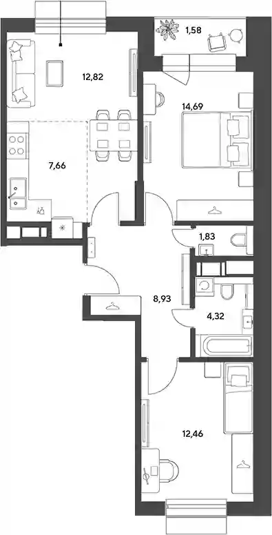 10 474 311 ₽3-к.квартира, 58.82 м², 12 эт.