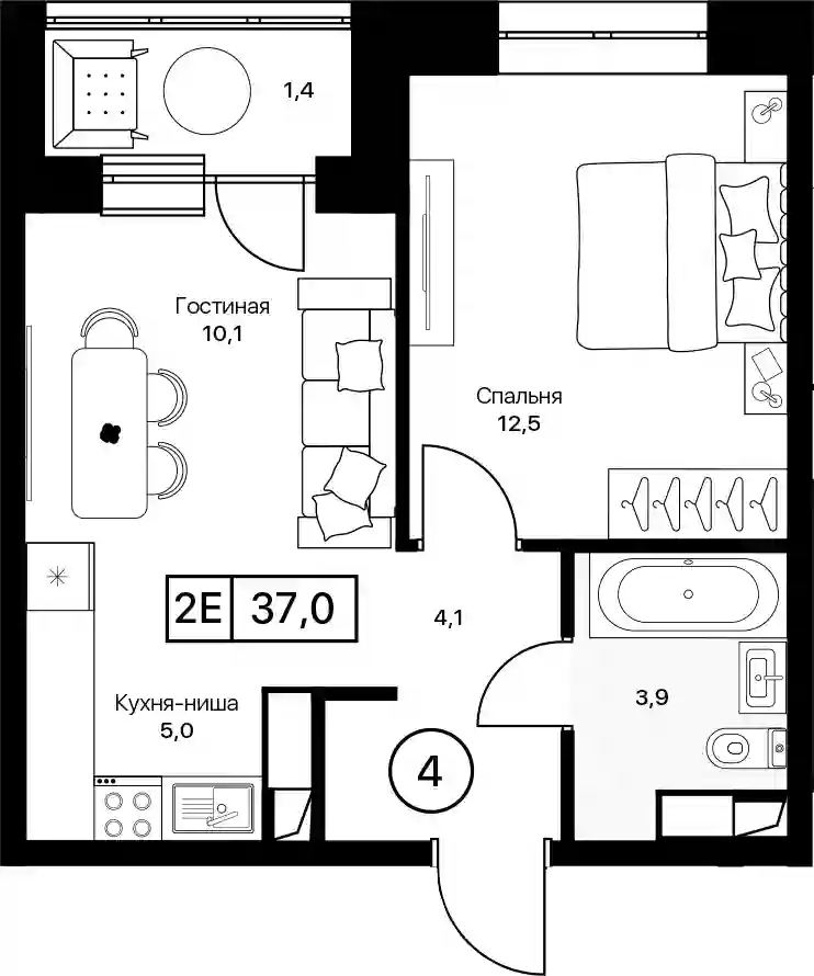 6 673 600 ₽1-к.квартира, 39.6 м², 4 эт.