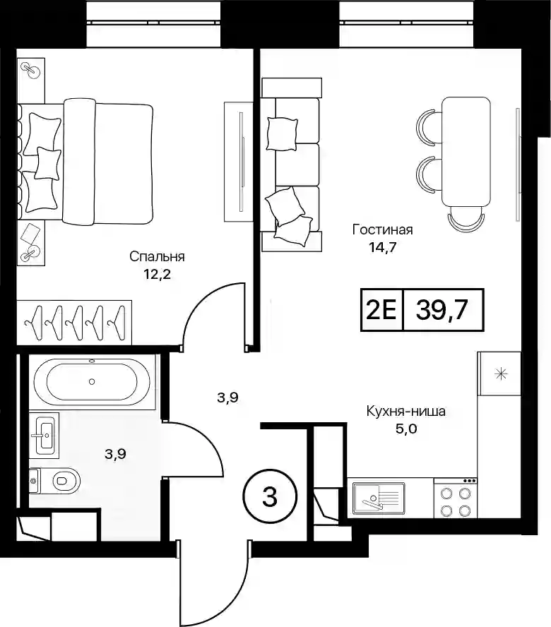 8 557 000 ₽2-к.квартира, 39.7 м², 12 эт.