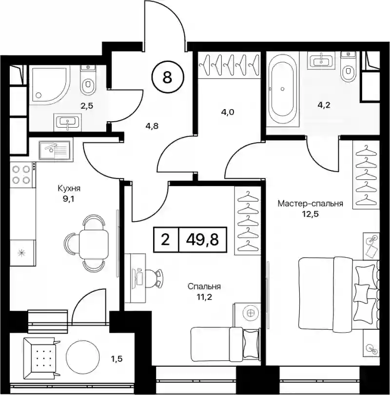 11 767 500 ₽2-к.квартира, 50.6 м², 8 эт.