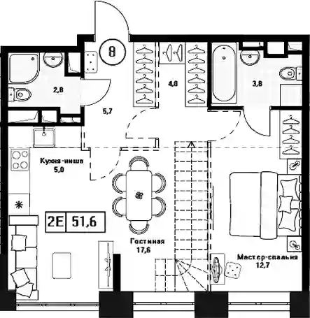 15 325 200 ₽2-к.квартира, 51.6 м², 17 эт.