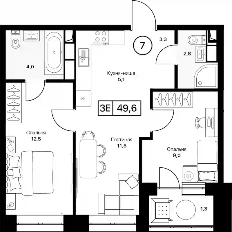 11 808 000 ₽3-к.квартира, 48.3 м², 13 эт.