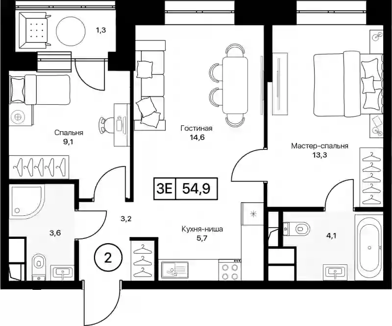 11 582 500 ₽2-к.квартира, 55.1 м², 10 эт.