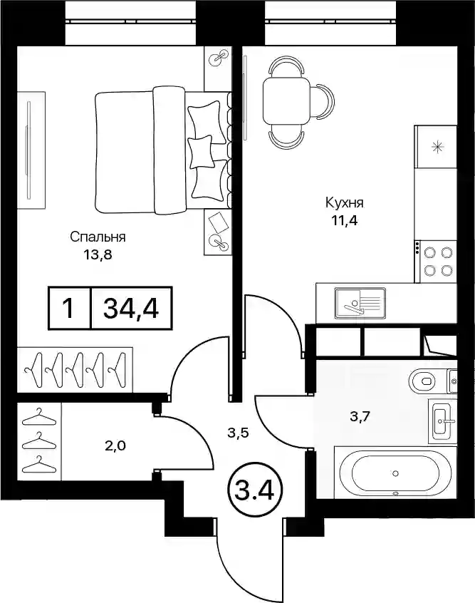 34.4 м2