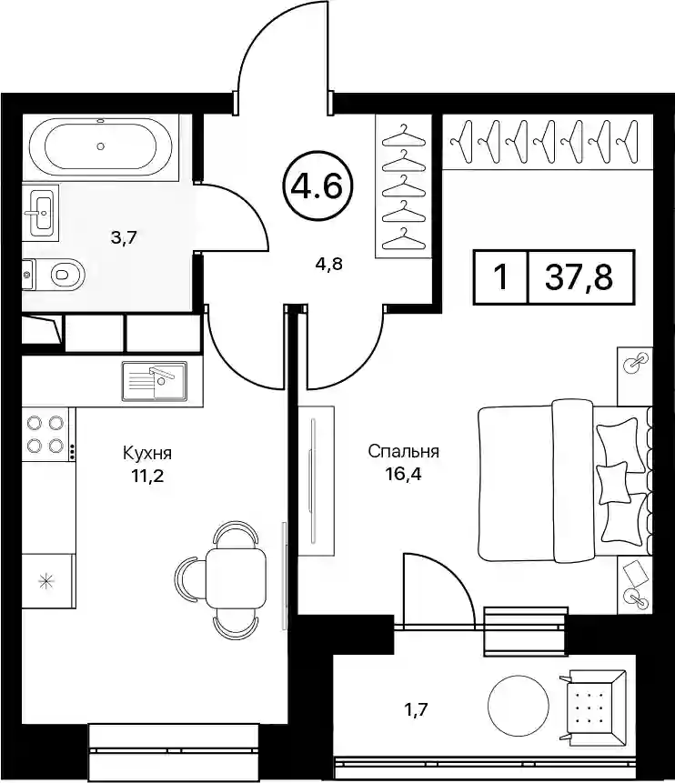 7 841 600 ₽2-к.квартира, 37.8 м², 7 эт.