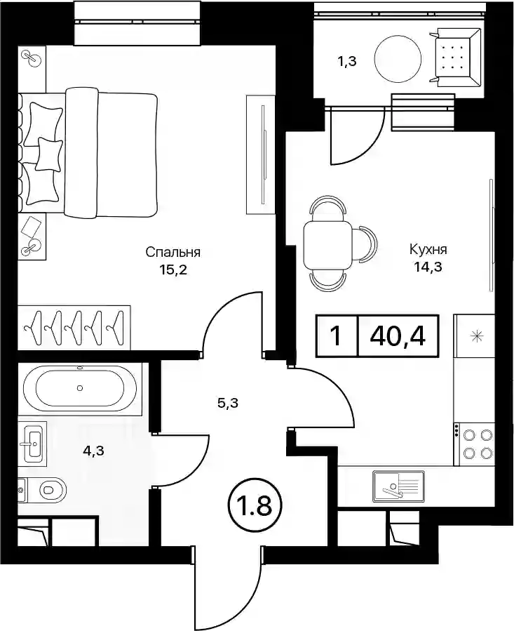 7 790 000 ₽1-к.квартира, 39.9 м², 6 эт.